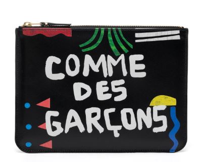 なかでも注目を集めるのが、CDG WALLETとアーティストDIANA EJAITAによる特別企画だ。ブラックレザーをベースに、彼女の色彩豊かなイラストを大胆に配したスモールレザーグッズは、アートと実用性を兼ね備えた逸品。